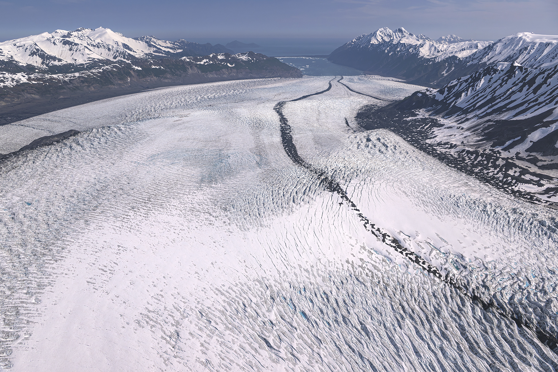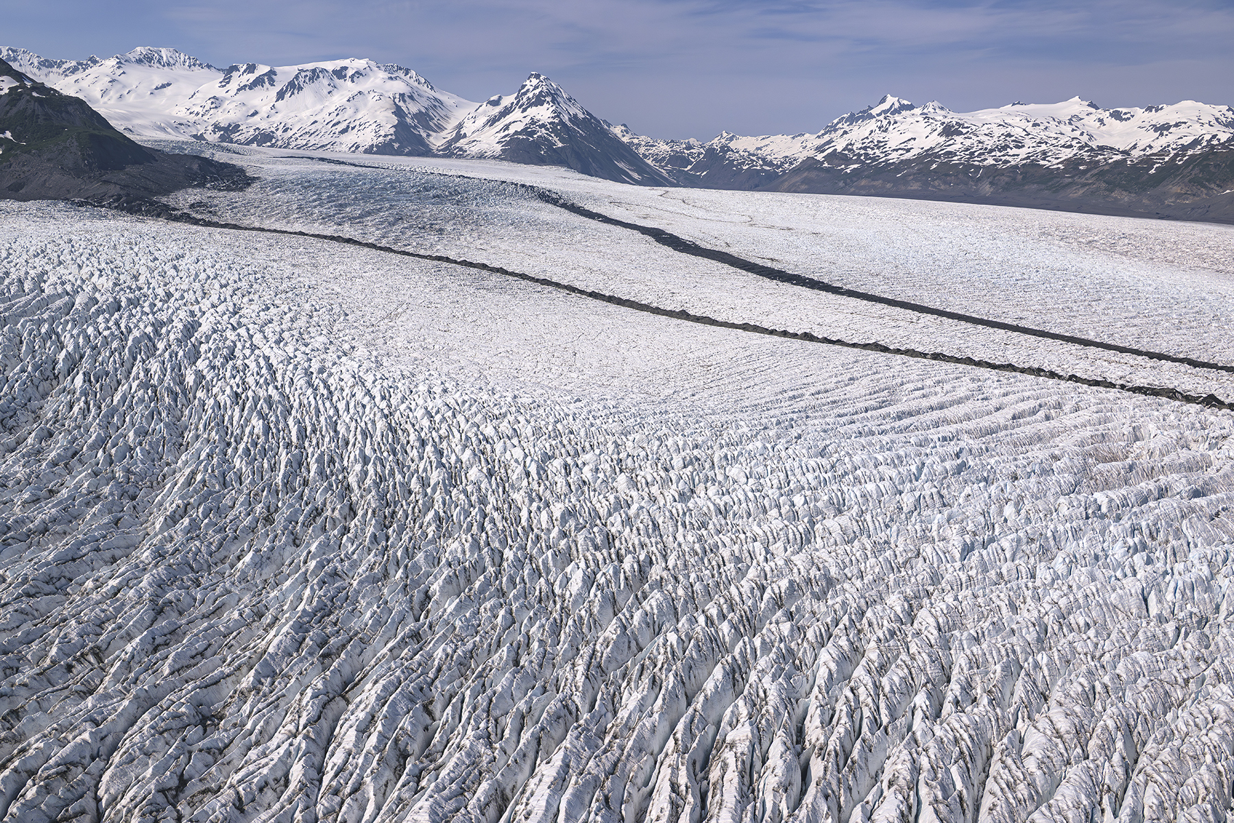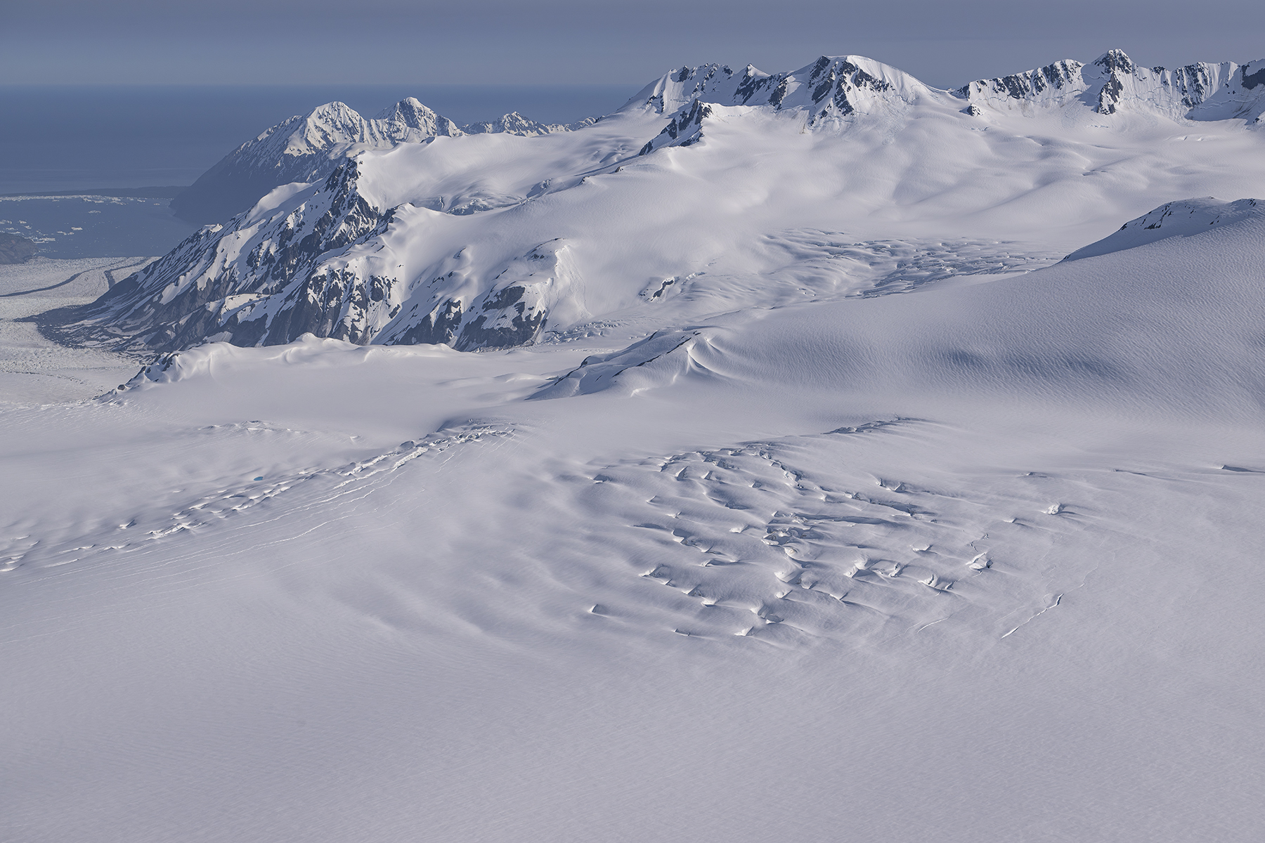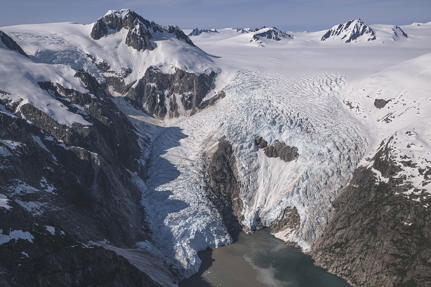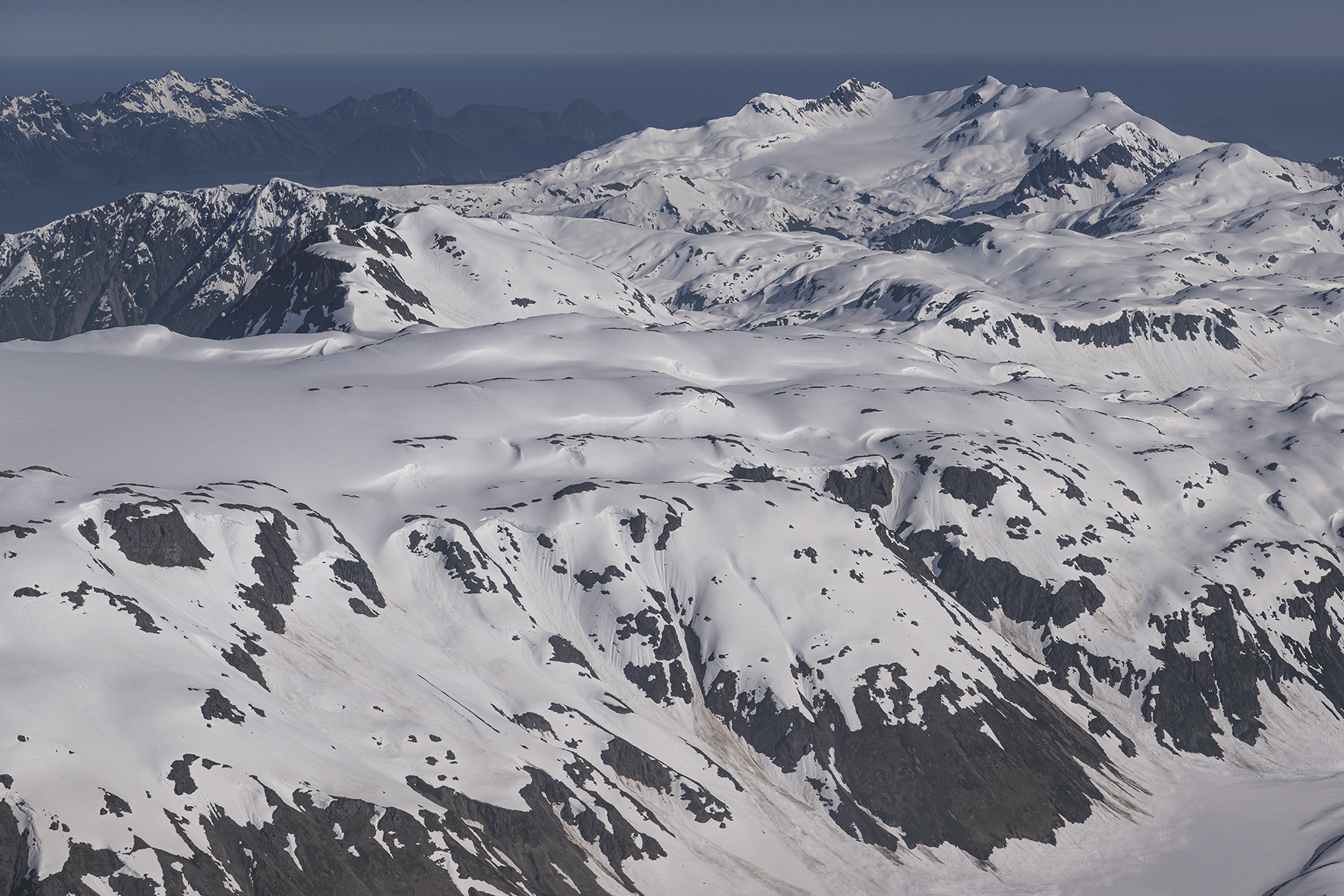 Le Kenai Fjords National Park est un lieu où se rencontrent les montagnes, la glace et l’océan. La petite ville de Seward en constitue la porte d’accès. Essentiellement marin, il ne se visite que par bateau. Différents types de croisières sont proposées afin de découvrir les animaux marins, les baies et les glaciers. Ces derniers, au nombre d’une quarantaine et provenant principalement du champ de glace Harding, se jettent presque tous dans la mer. Le Bear Glacier est le plus grand d’entre eux mais fond rapidement en raison du changement climatique. Le meilleur moyen pour photographier les paysages glaciaires du parc est l’avion taxi, bien que très peu de compagnies offrent ce service. En l’espace de 90 minutes, à bord du Piper Super Cub de la compagnie AA Seward Air Tours, nous avons réalisé des prises de vue du Harding Icefield (images 10 à 14), du Bear Glacier (images 5 à 8, 19 à 22 et 24) de l’AiakalikGlacier (images 1 à 4), du Northwestern Glacier (images 15 à 17). Les images 31 à 36 montrent les Îles Chiswell qui font partie de l’Alaska Maritime National Wildlife Refuge et qui abritent des colonies d’oiseaux marins, tels que mouettes tridactyles, guillemots de Troïl, guillemots colombin, macareux cornus, macareux huppés et cormorans pélagiques.