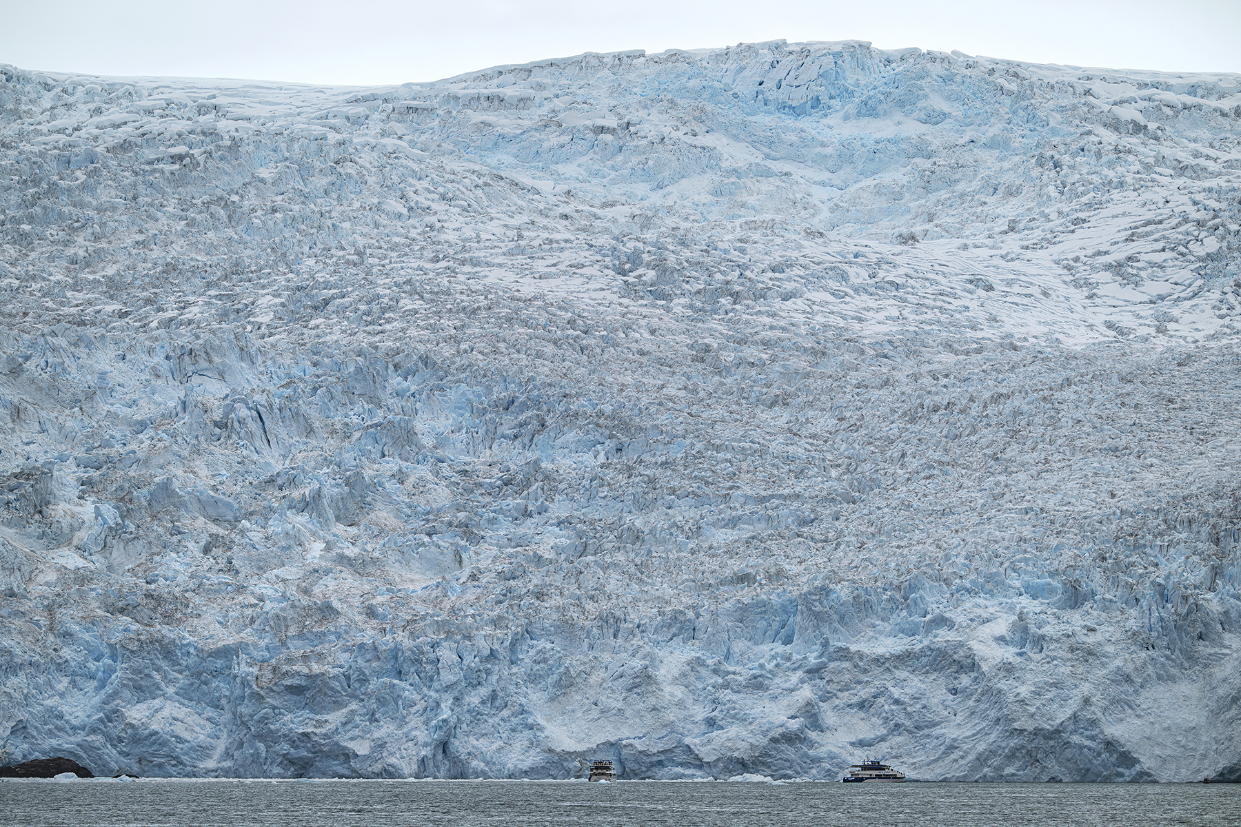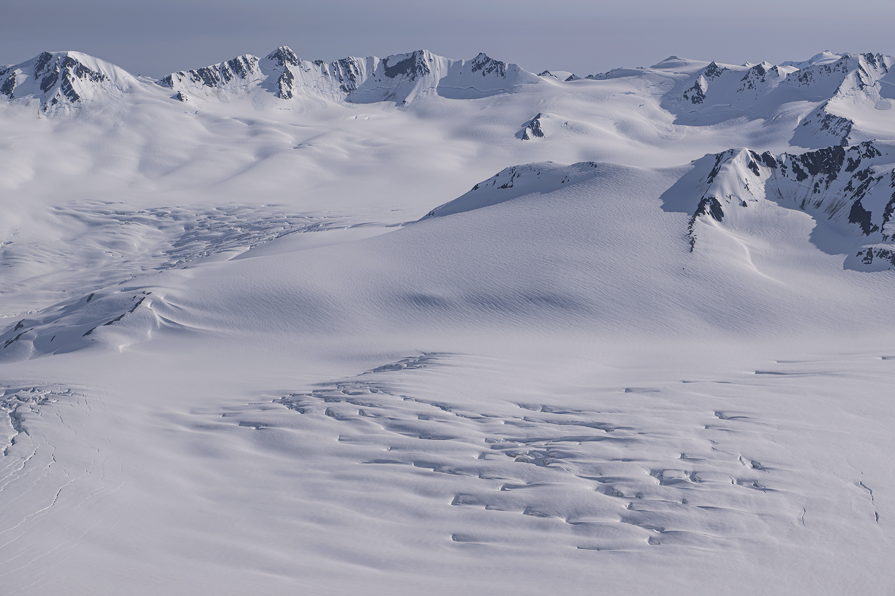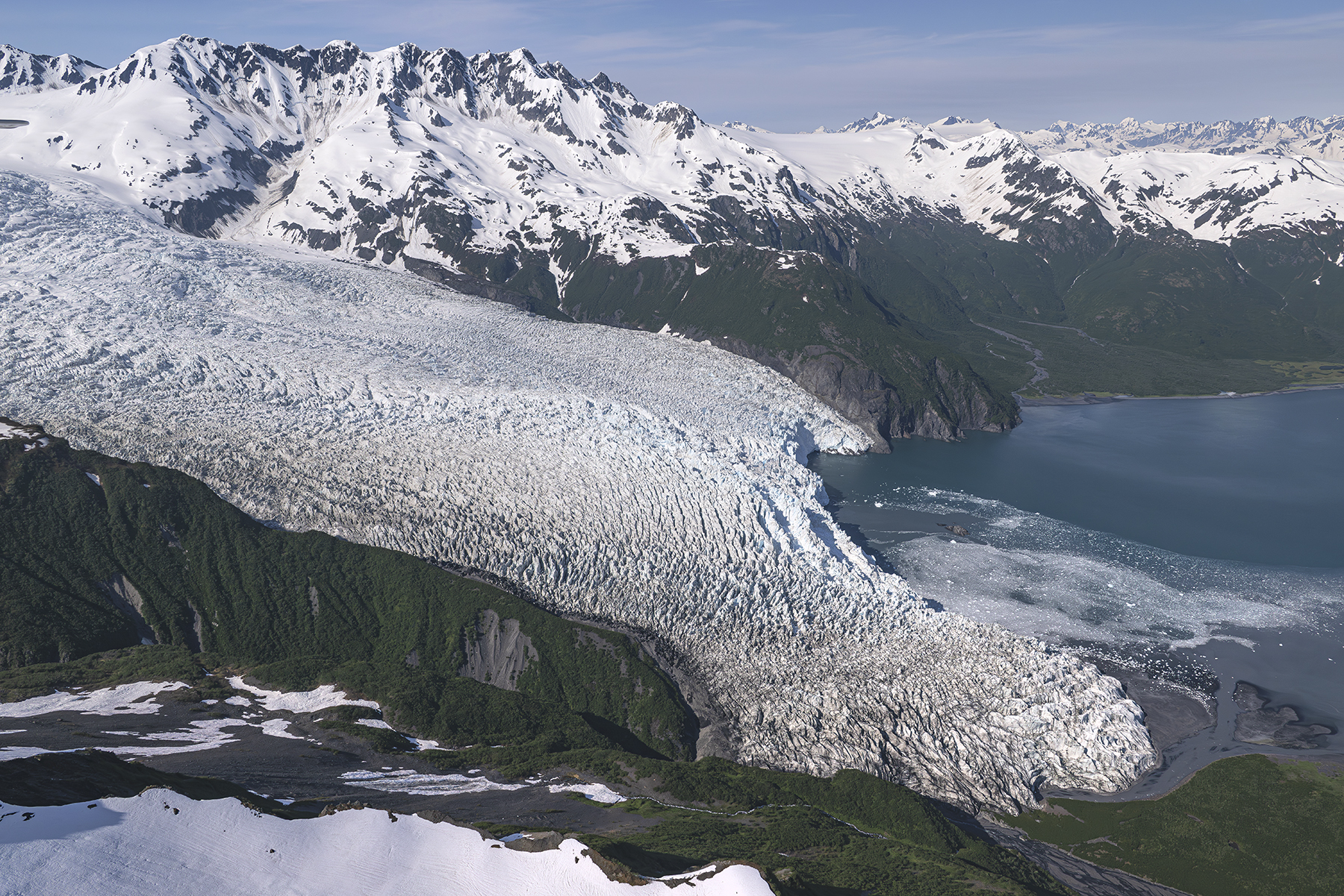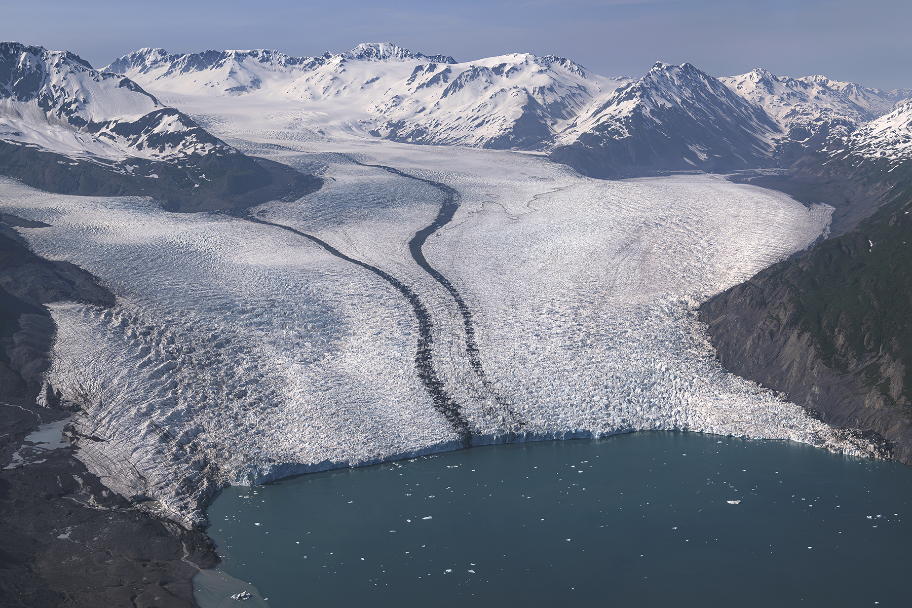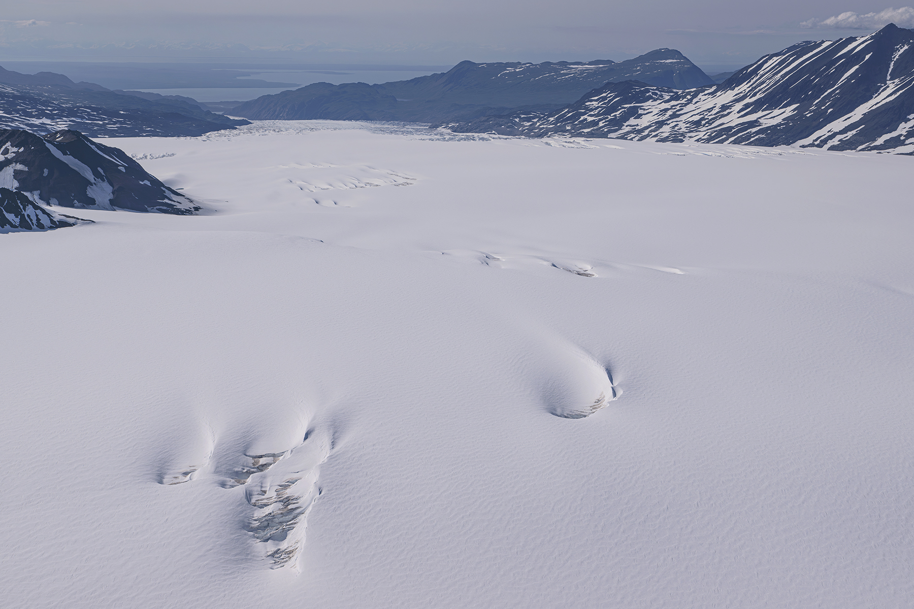 Le Kenai Fjords National Park est un lieu où se rencontrent les montagnes, la glace et l’océan. La petite ville de Seward en constitue la porte d’accès. Essentiellement marin, il ne se visite que par bateau. Différents types de croisières sont proposées afin de découvrir les animaux marins, les baies et les glaciers. Ces derniers, au nombre d’une quarantaine et provenant principalement du champ de glace Harding, se jettent presque tous dans la mer. Le Bear Glacier est le plus grand d’entre eux mais fond rapidement en raison du changement climatique. Le meilleur moyen pour photographier les paysages glaciaires du parc est l’avion taxi, bien que très peu de compagnies offrent ce service. En l’espace de 90 minutes, à bord du Piper Super Cub de la compagnie AA Seward Air Tours, nous avons réalisé des prises de vue du Harding Icefield (images 10 à 14), du Bear Glacier (images 5 à 8, 19 à 22 et 24) de l’AiakalikGlacier (images 1 à 4), du Northwestern Glacier (images 15 à 17). Les images 31 à 36 montrent les Îles Chiswell qui font partie de l’Alaska Maritime National Wildlife Refuge et qui abritent des colonies d’oiseaux marins, tels que mouettes tridactyles, guillemots de Troïl, guillemots colombin, macareux cornus, macareux huppés et cormorans pélagiques.