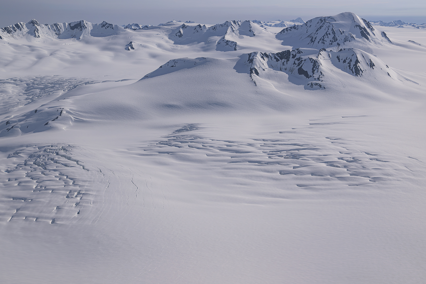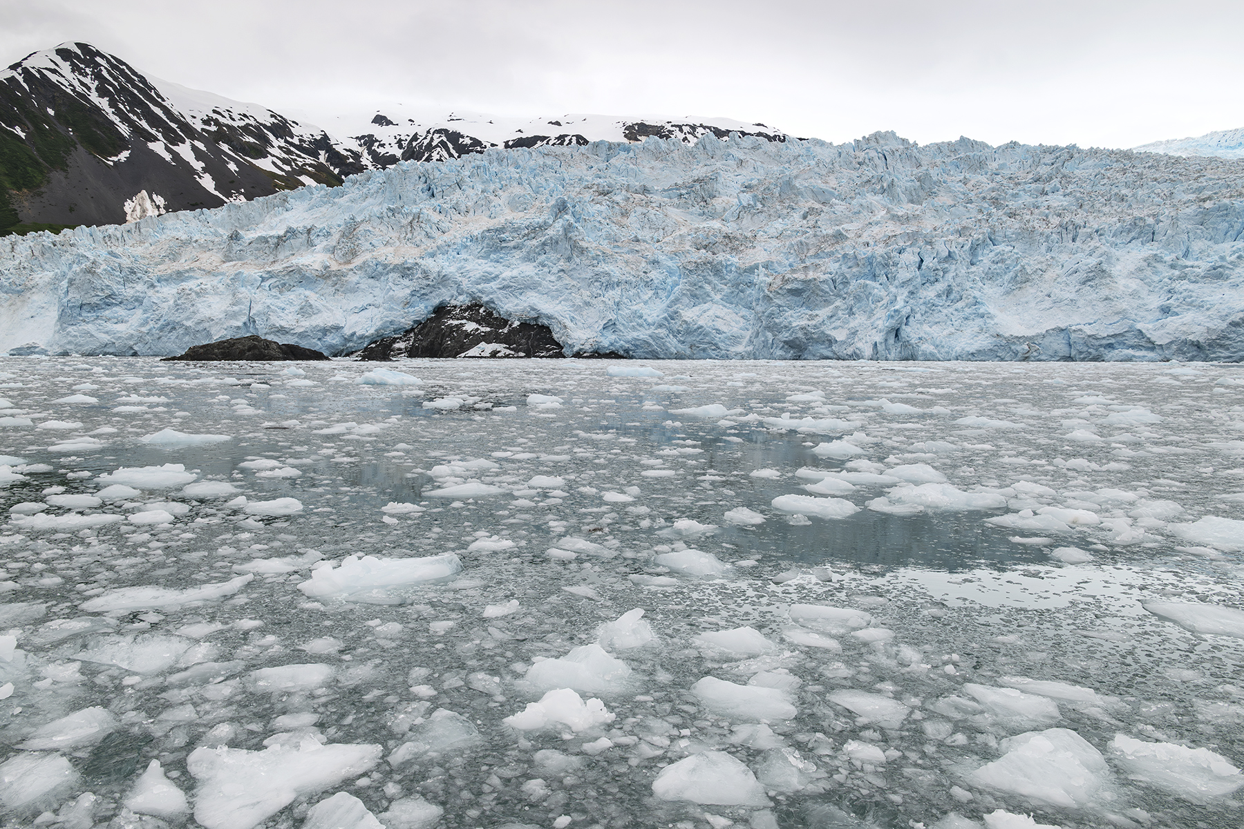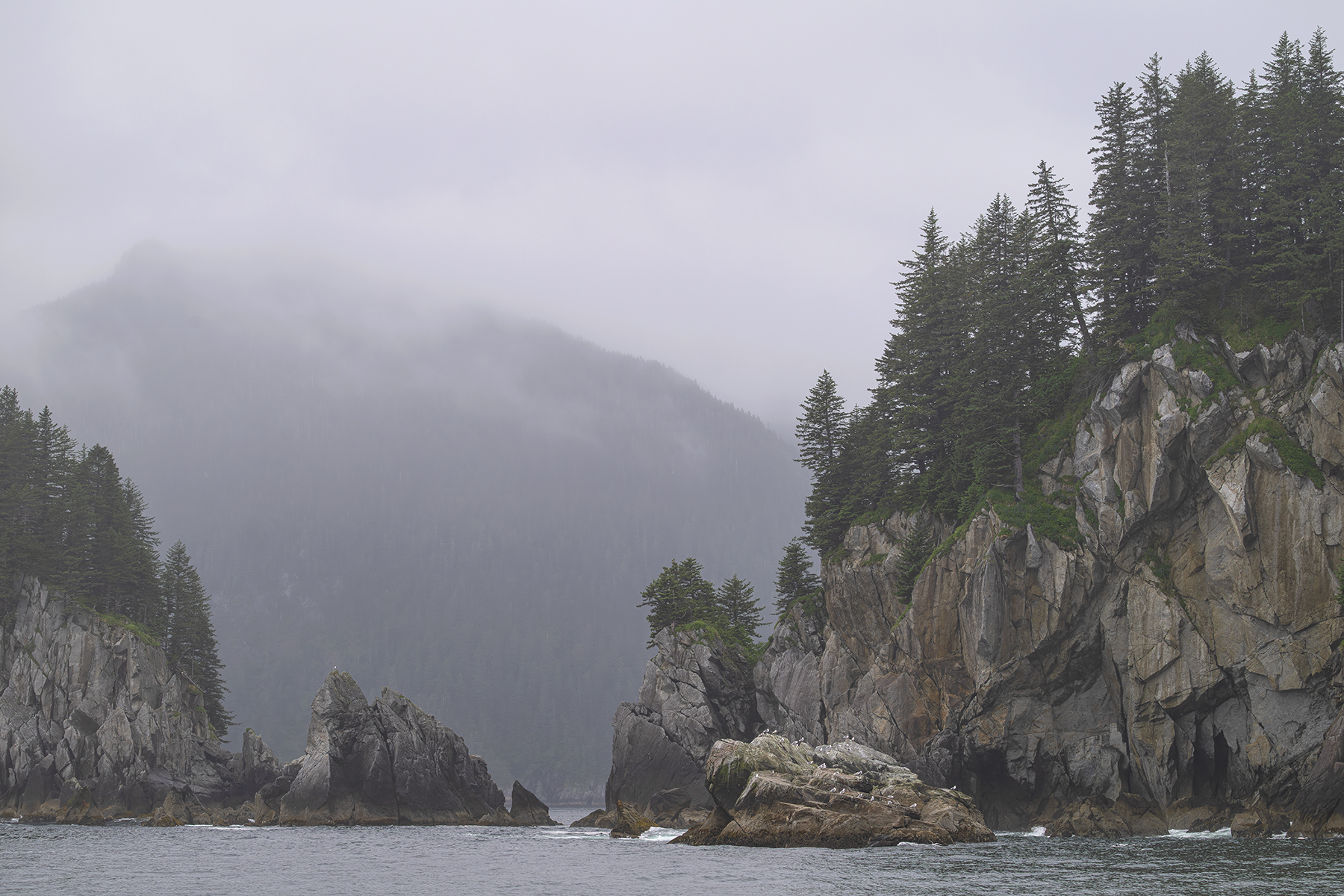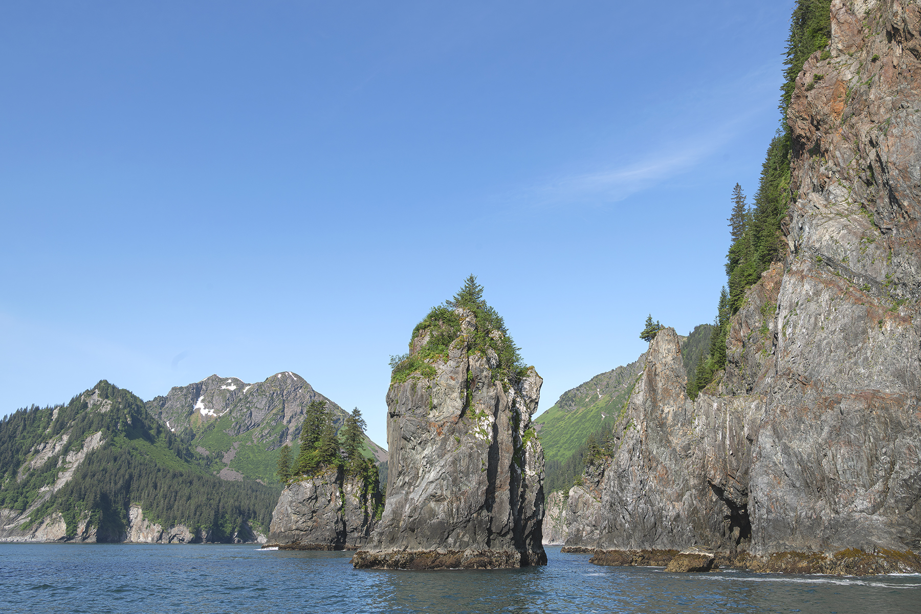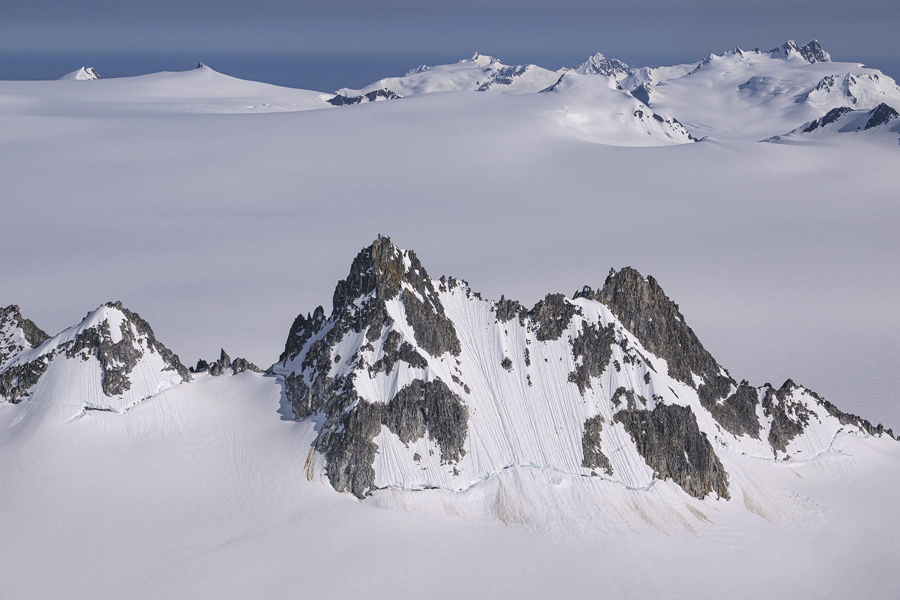 Le Kenai Fjords National Park est un lieu où se rencontrent les montagnes, la glace et l’océan. La petite ville de Seward en constitue la porte d’accès. Essentiellement marin, il ne se visite que par bateau. Différents types de croisières sont proposées afin de découvrir les animaux marins, les baies et les glaciers. Ces derniers, au nombre d’une quarantaine et provenant principalement du champ de glace Harding, se jettent presque tous dans la mer. Le Bear Glacier est le plus grand d’entre eux mais fond rapidement en raison du changement climatique. Le meilleur moyen pour photographier les paysages glaciaires du parc est l’avion taxi, bien que très peu de compagnies offrent ce service. En l’espace de 90 minutes, à bord du Piper Super Cub de la compagnie AA Seward Air Tours, nous avons réalisé des prises de vue du Harding Icefield (images 10 à 14), du Bear Glacier (images 5 à 8, 19 à 22 et 24) de l’AiakalikGlacier (images 1 à 4), du Northwestern Glacier (images 15 à 17). Les images 31 à 36 montrent les Îles Chiswell qui font partie de l’Alaska Maritime National Wildlife Refuge et qui abritent des colonies d’oiseaux marins, tels que mouettes tridactyles, guillemots de Troïl, guillemots colombin, macareux cornus, macareux huppés et cormorans pélagiques.