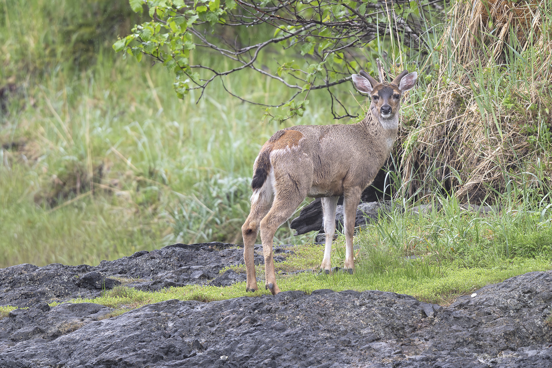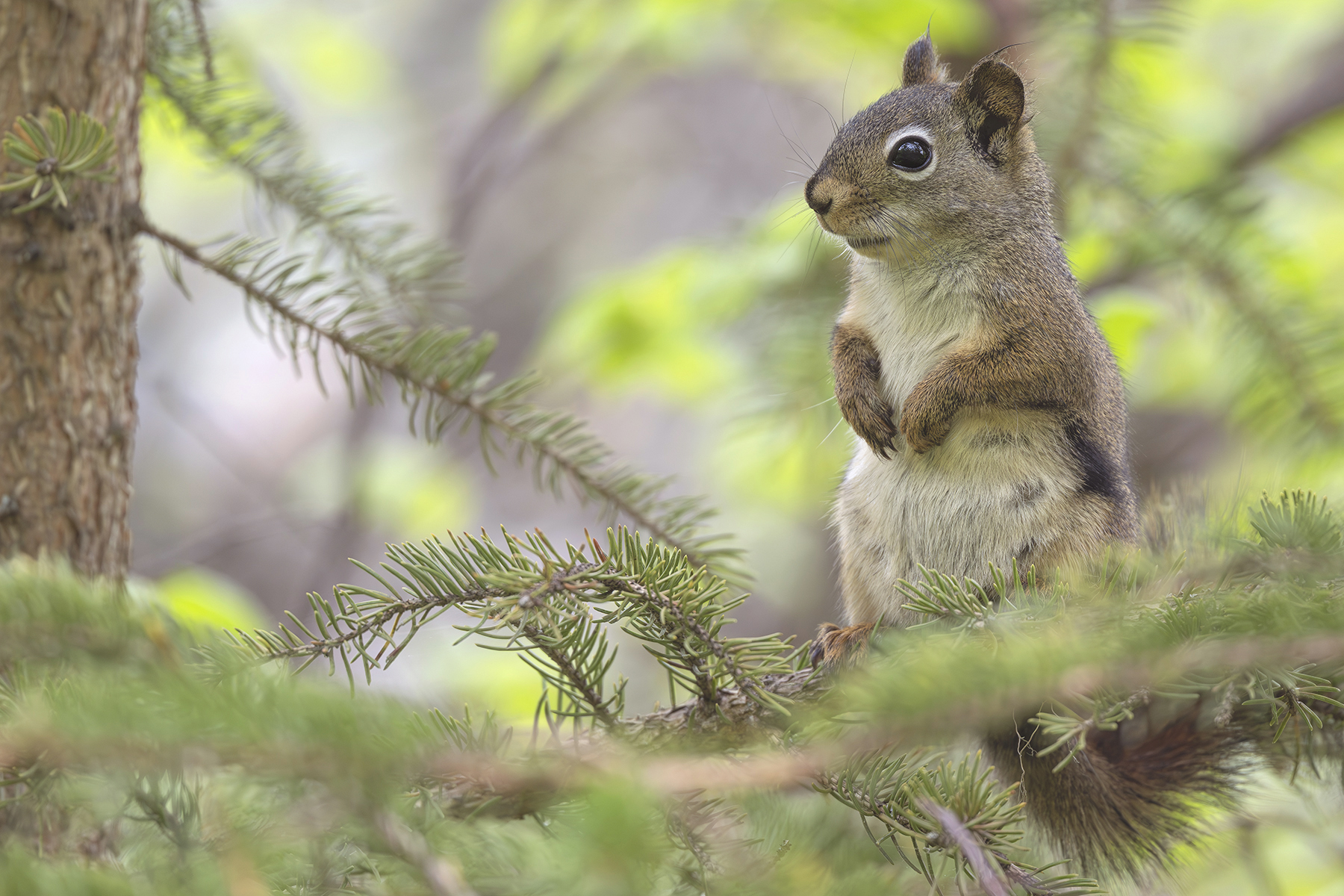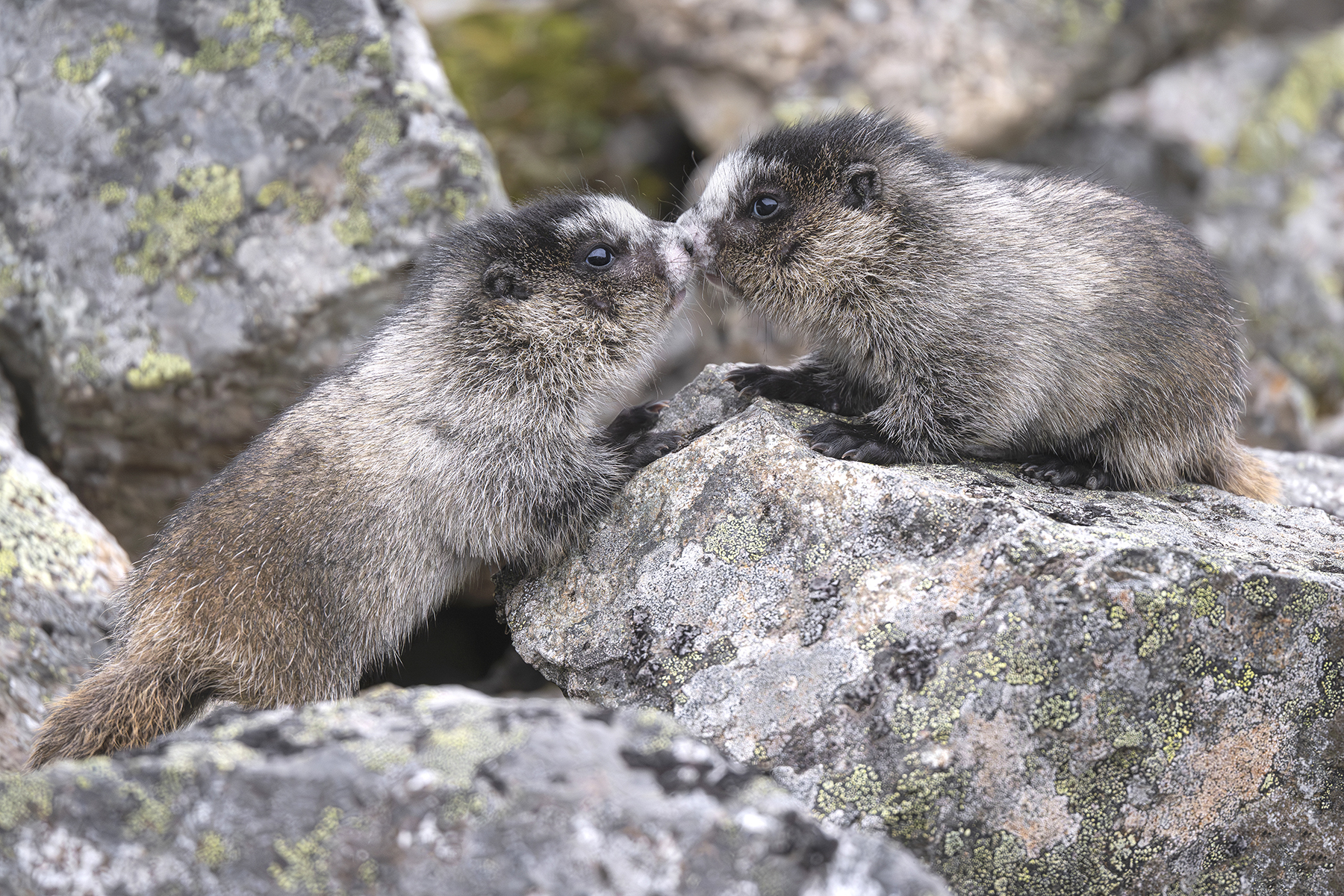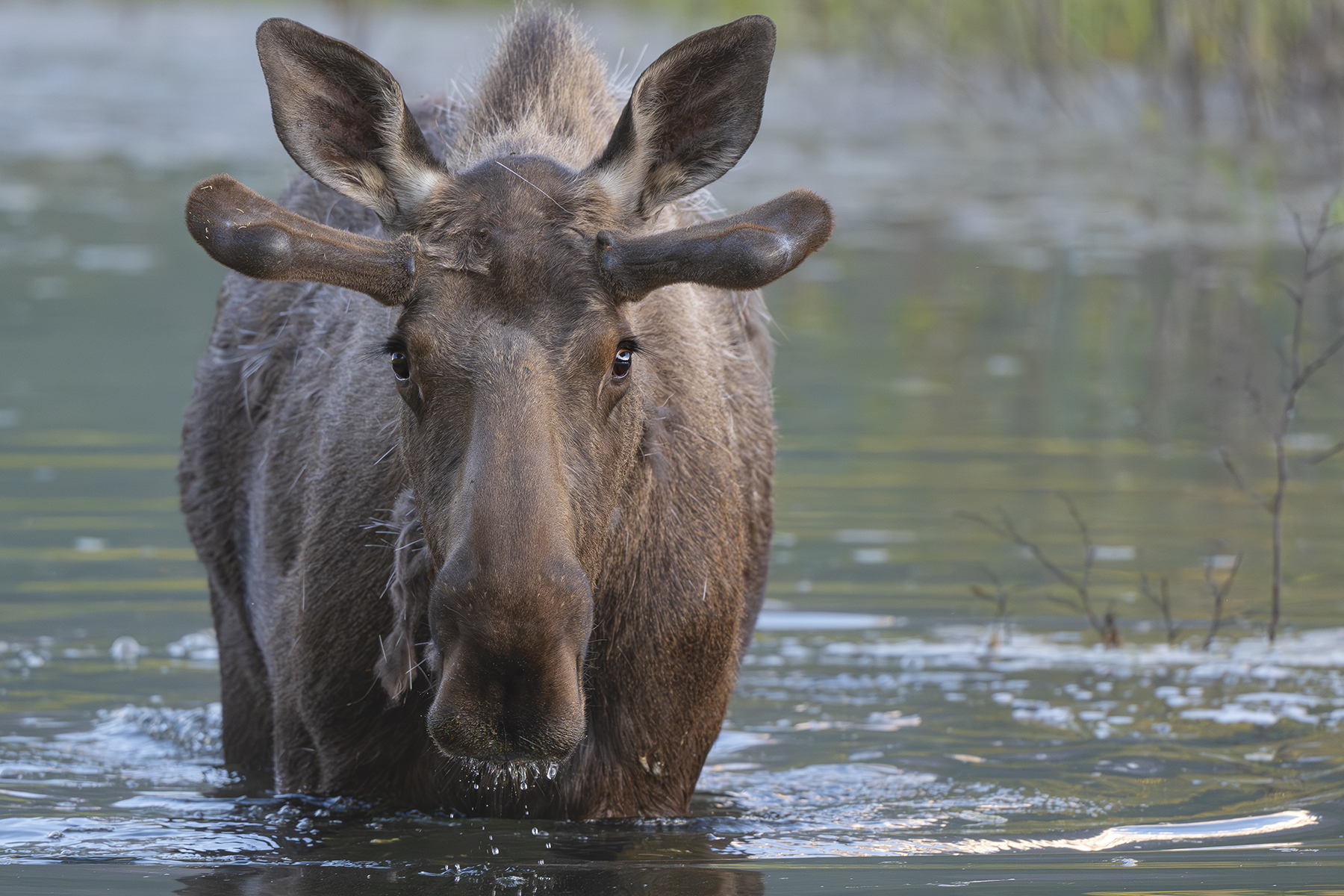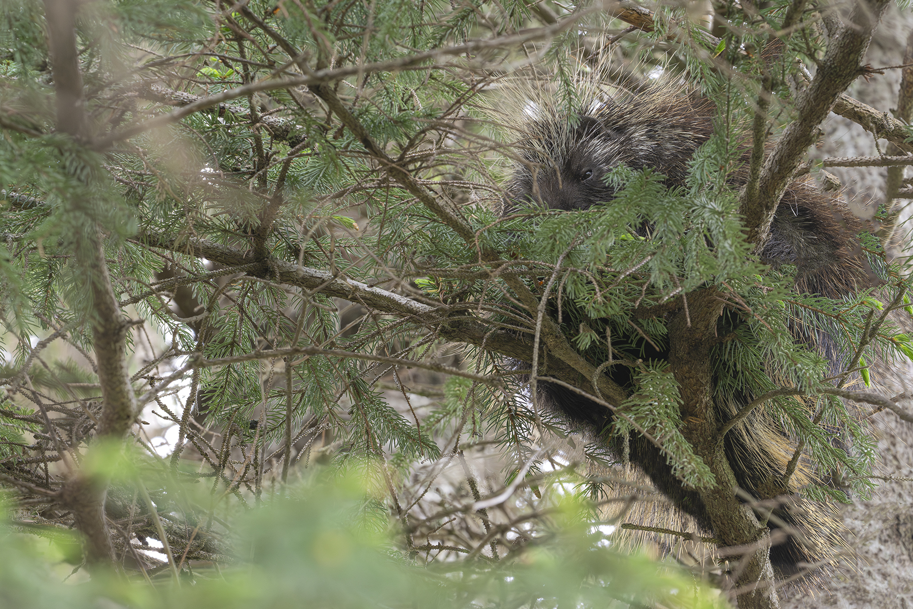 La fin du printemps et le début de l’été sont les meilleures périodes pour photographier les femelles et leurs jeunes de l’année. Quelle que soit l’espèce, l’exercice demande énormément de patience, de persévérance et de chance, les animaux demeurant extrêmement discrets et vigilants durant cette étape de la reproduction. En début d’été, nous avons photographié quelques femelles et cabris du Mouflon de Dall (images 1 à 4) dans les Chugach Mountains et une femelle de Marmotte des Rocheuses surveillant ses trois marmottons dans les Talkeetna Mountains (images 5 à 7). Fin-mai, en différents endroits, nous avons trouvé quelques orignaux en pleine mue printanière (images 11 et 21 à 23). Le 29 mai, aux abords de la Delta River, nous avons découvert une femelle d’Orignal et son petit, né probablement le jour-même ou le jour précédent (images 15 et 16). Immobilisés inconfortablement entre un ravin et le courant impétueux de la rivière, la femelle ne semblait trouver aucune issue alors que son petit, pris de panique, beuglait au point d’être secouru par une autre et superbe femelle non suitée (image 17). Début juin, dans la région d’Eagle River, alors que nous faisions de l’affût au castor, une femelle d’Orignal et son petit, poursuivis par un ours brun, ont déboulé à quelques mètres de nos objectifs (images 12 à 14). N’ayant eu que très peu d’opportunités de rencontrer des castors, nous nous sommes reportés sur le Rat musqué que nous avons observé à huit reprises (images 27 à 29). Enfin, gros coup de chance à Homer, en parcourant l’un des sentiers du Wynn Nature Center : après maintes recherches infructueuses, nous réussissons enfin à photographier une femelle de Porc-épic et son petit. Il nous aura fallu patienter plus de deux heures pour que le nouveau-né veuille bien nous montrer sa sympathique frimousse.