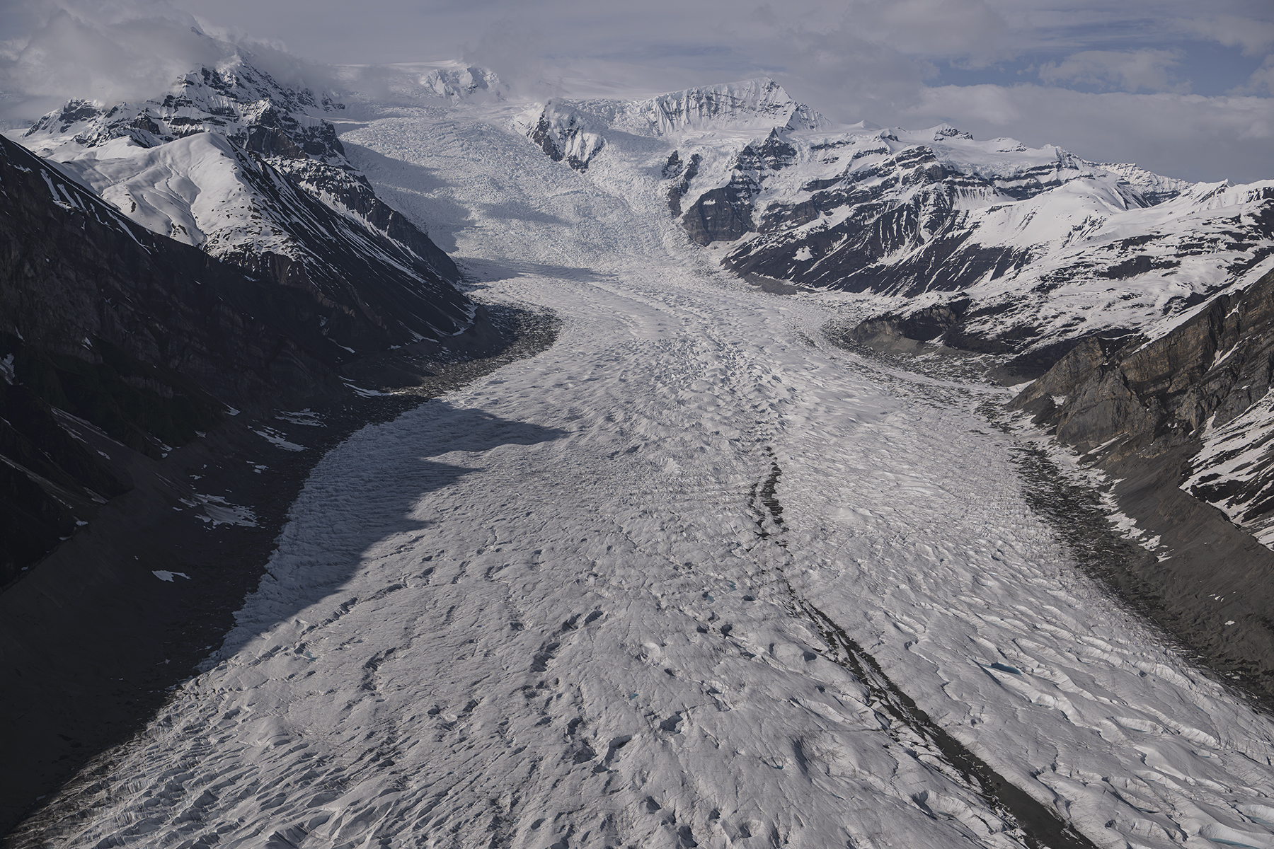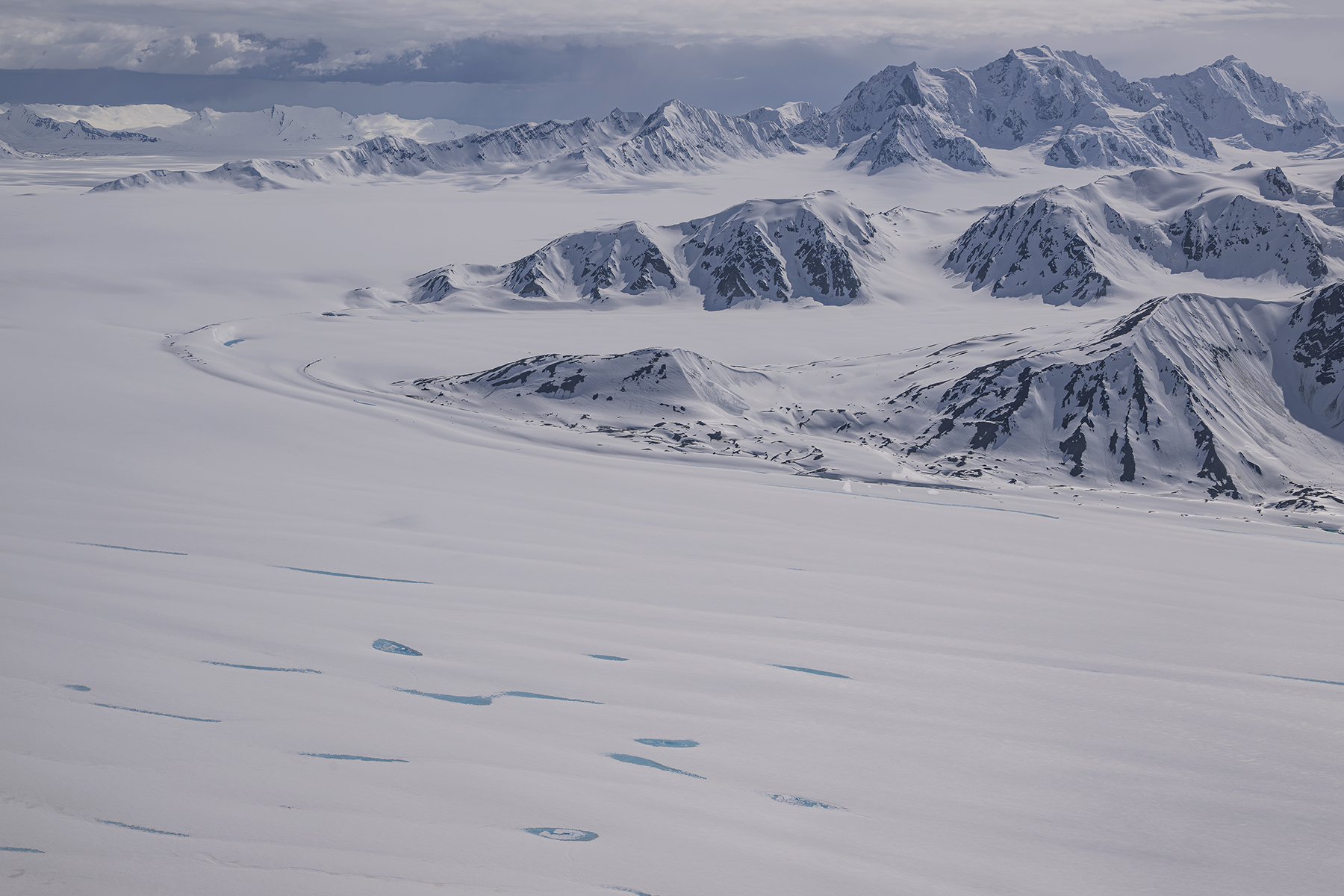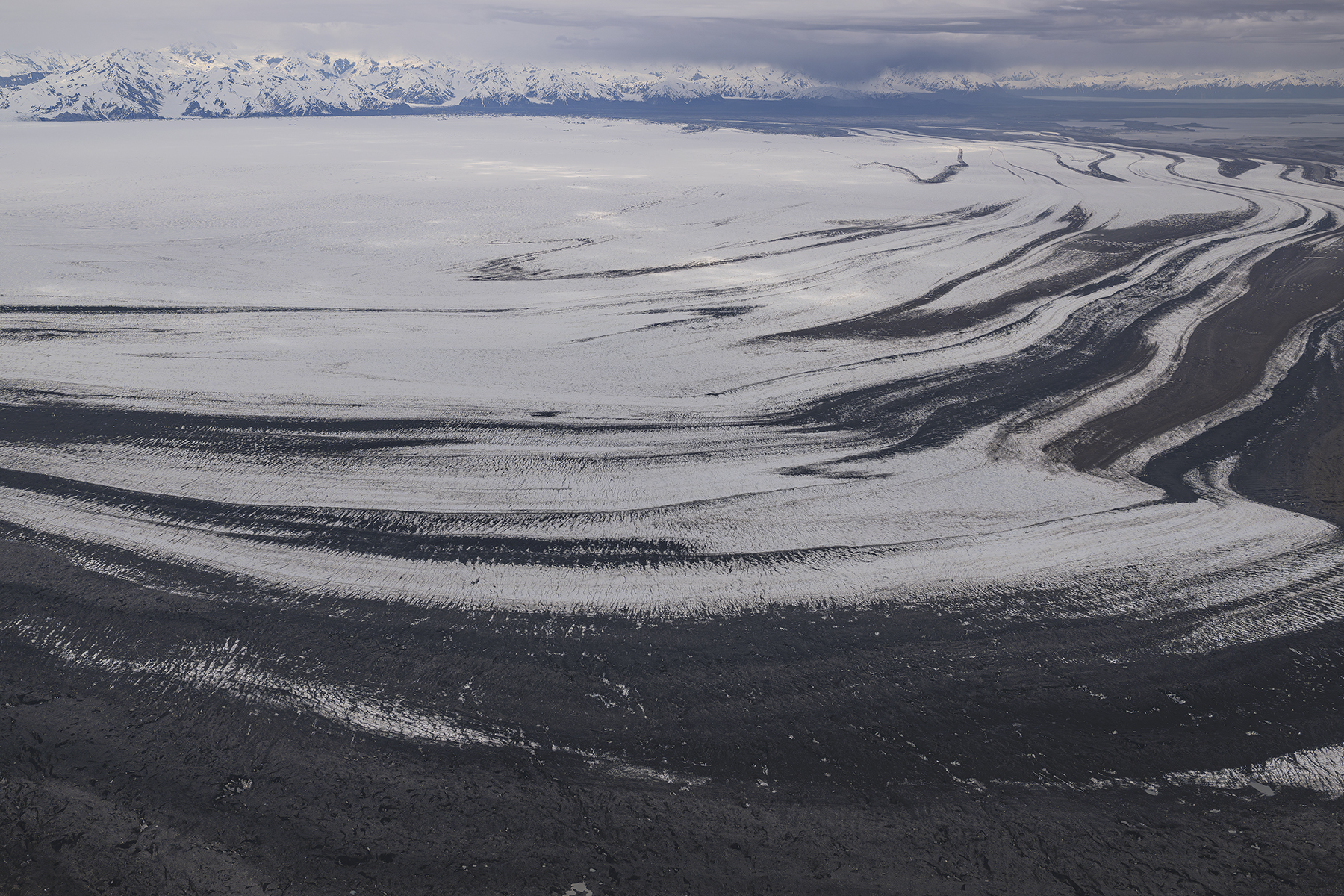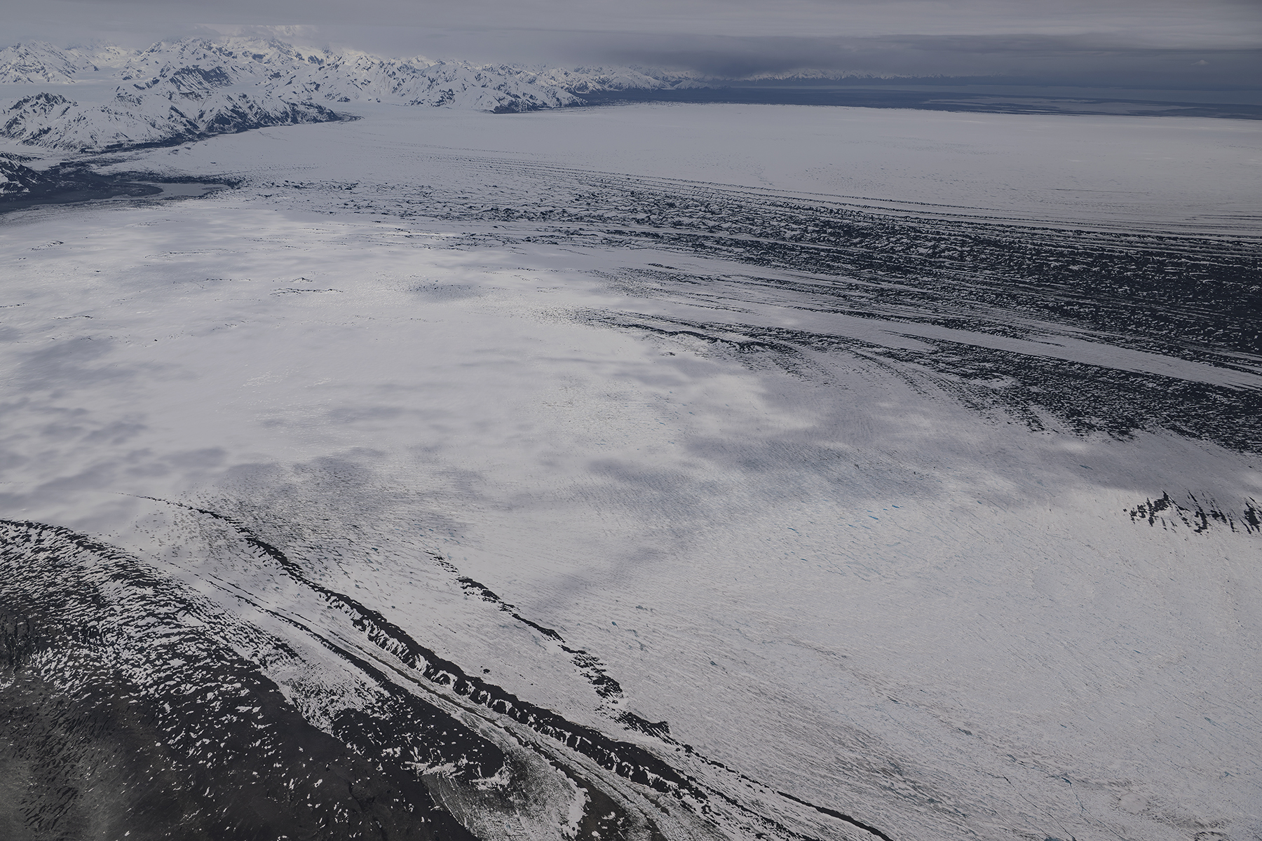 Le parc national de Wrangell–Saint-Élie, le plus grand des États-Unis, abrite la plupart des plus hauts sommets d’Alaska et 60 % des terres couvertes en permanence de glace, situés à proximité immédiate de l’Océan Pacifique (Golfe d’Alaska). Le mont Saint-Élie (image 18), qui culmine à 5’488 mètres d’altitude, est le point le plus élevé du massif. Situé à la frontière entre États-Unis et Canada, il est le deuxième sommet le plus élevé d’Amérique du Nord. Ne se trouvant qu’à 18 kilomètres de la mer, l’imposante verticalité de son relief évoque les hauts sommets himalayens. Le parc national de Wrangell–Saint-Élie a été façonné par les forces opposées du volcanisme et de la glaciation, ses hautes montagnes ayant été soulevées par la tectonique des plaques. Les paysages du parc comprennent les glaciers Tana (images 1 à 5), Bremner (image 6), Kennicott (images 7 à 9), Bering (images 16 et 36) et Malaspina (images 20 à 23), le plus grand glacier de piémont d’Amérique du Nord qui se déverse dans la baie de Yakutat (images 24 et 25). Le champ de glace Bagley (images 14, 15 et 33), forme la deuxième plus grande masse glaciaire non polaire d’Amérique du Nord. Isolé parmi les champs de glace, le mont Steller (image 34), forme le point culminant de la Waxell Ridge (images 33 et 35), une crête située sur le côté sud du champ de glace Bagley. Quant à Icy Bay (images 26 à 28), elle figure parmi les plus beaux joyaux naturels d’Alaska. Cette baie s’est formée par suite du retrait rapide des glaciers Guyot (images 27 et 29), Yahtse (images 30 et 31) et Tyndall (image 32).